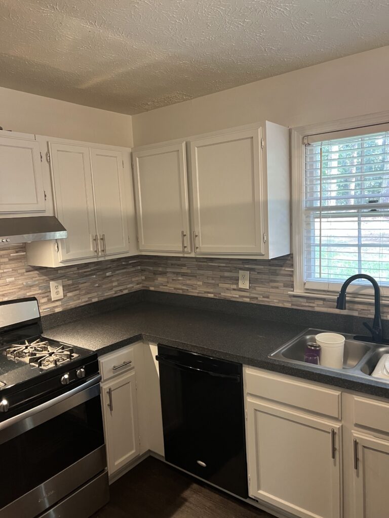 The cabinet painting and backsplash installation remodeling project was successfully completed, revitalizing the kitchen with a fresh, modern new look. The process began with preparing the cabinets, which included cleaning all surfaces to ensure good paint adhesion. The doors and drawers were removed and labeled for easy reinstallation.