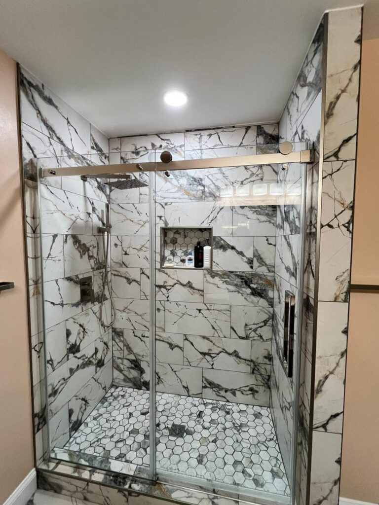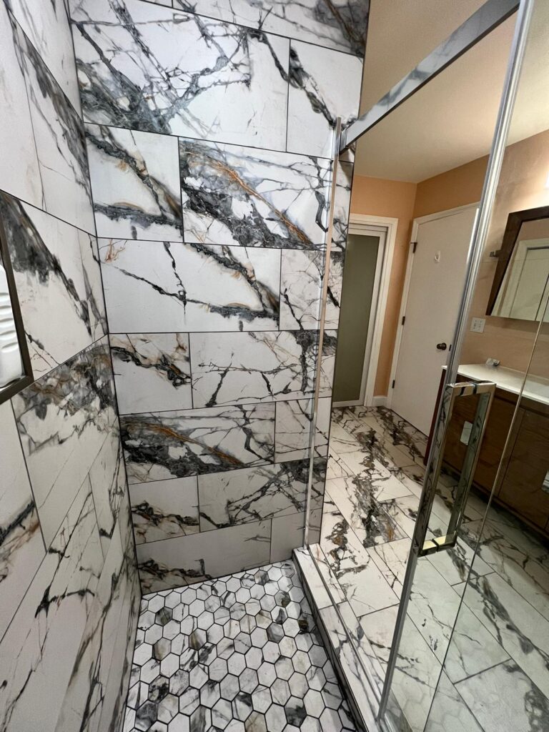 Shower Drain: Adjustments were made to the shower base plumbing, ensuring proper alignment and drainage for the new configuration. Shower Faucet: The shower faucet plumbing was also modified to meet new standards and customer requirements.