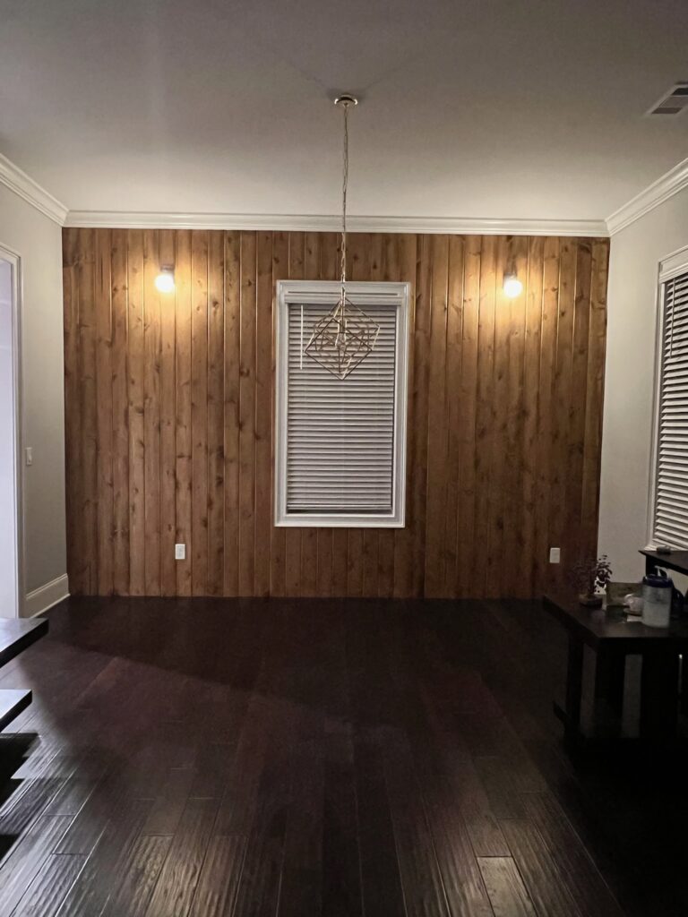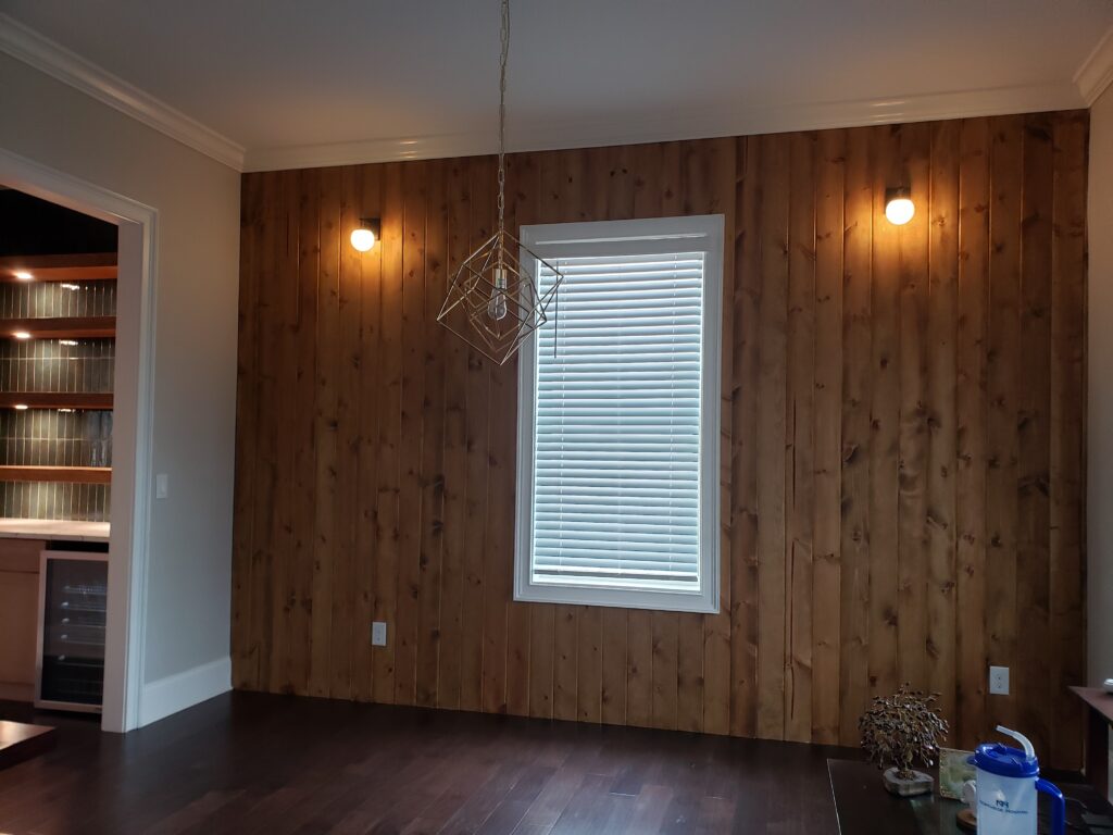 For the finishing touches, we painted the window frame in the same area, installed crown molding, and attached the outlet covers and connectors for a flawless finish. This interior design project met our client's expectations, creating a sophisticated and functional space.